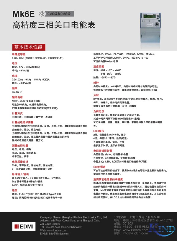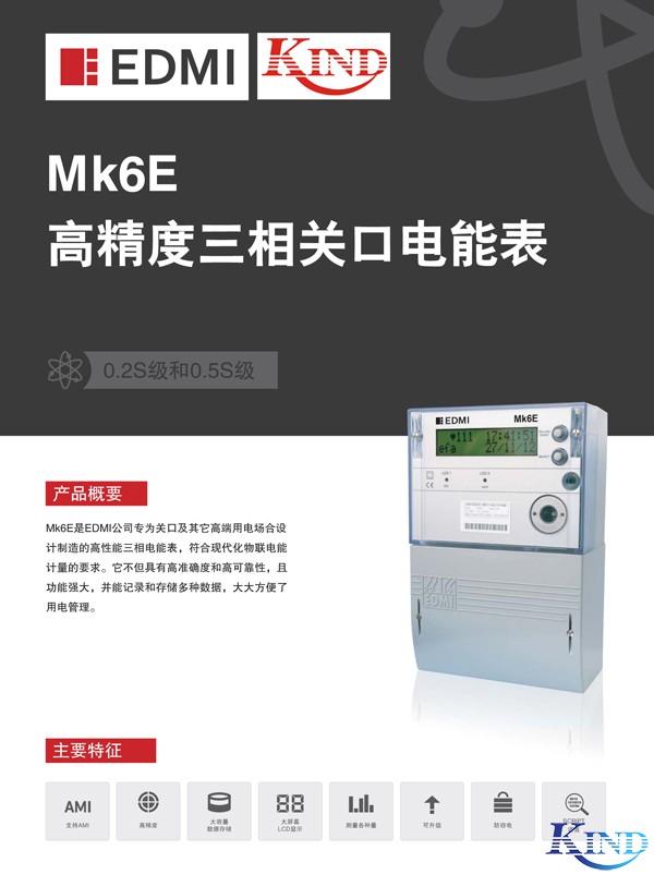 MK6E電能表是采用現(xiàn)代微電子技術(shù)、計(jì)算機(jī)技術(shù)、電測量技術(shù)、數(shù)據(jù)通信技術(shù)并充分考慮國內(nèi)用戶需求而設(shè)計(jì)的電能計(jì)量產(chǎn)品。該系列電能表采用數(shù)字處理技術(shù),計(jì)量精度高、性能穩(wěn)定、功能強(qiáng)大,適用于各級關(guān)口、大用戶計(jì)量,并且通過了多家權(quán)威機(jī)構(gòu)的檢測